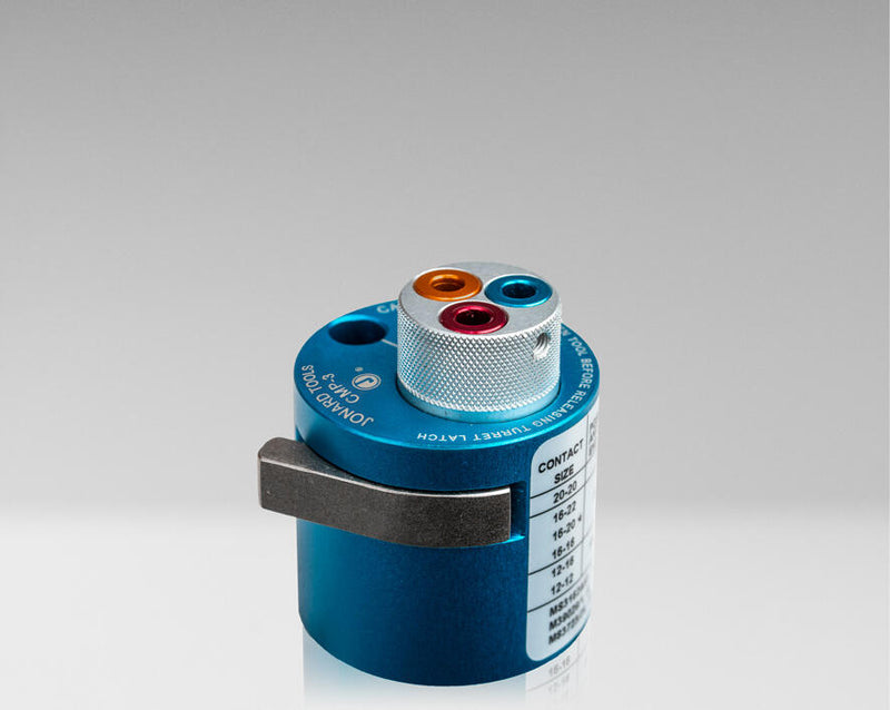 Designed for use with our CMP-1226 Precision Crimper (and other crimpers), this turret head is perfect for crimping 12, 16, and 20 front release connector contact pins onto 12-26 AWG wire.
