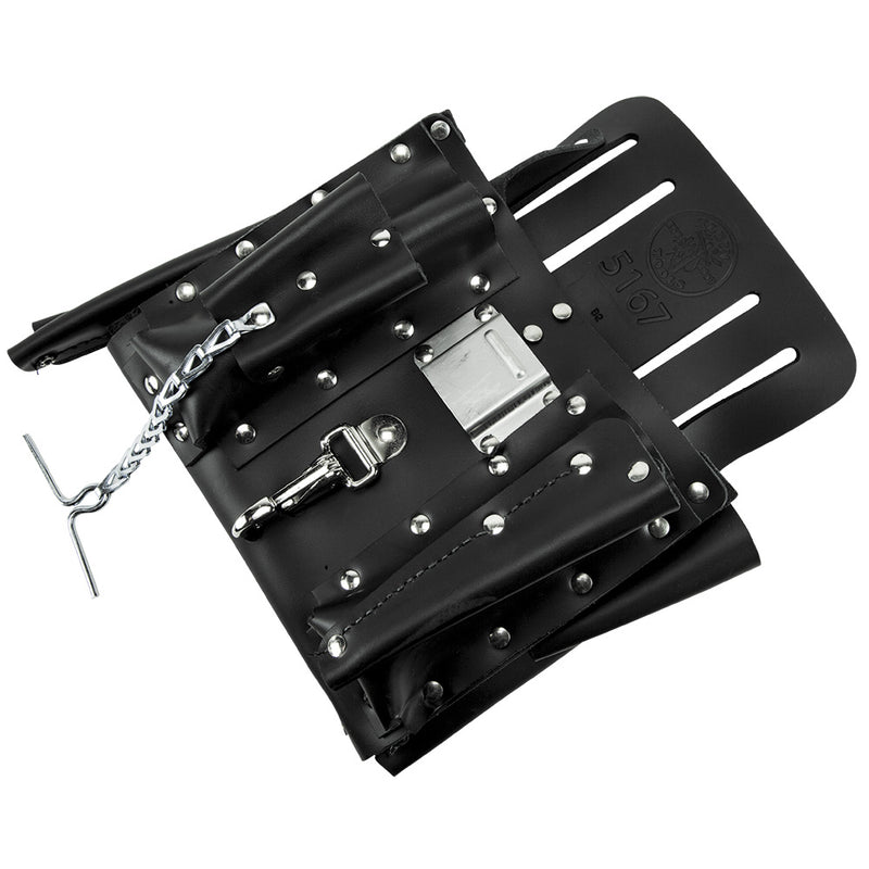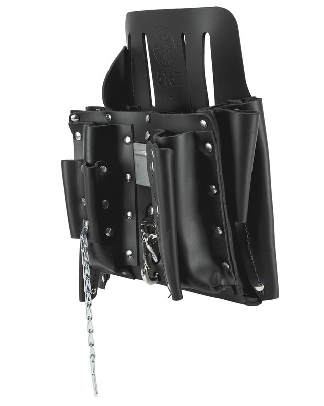 The Klein Tools 11-Pocket Tool Pouch is made from leather for moisture resistance and a Soft pliable feel. The pouch is constructed with rivets and stitching and uses a rivet to securely fasten the tape thong to the pouch. The 11 pocket design allows you to conveniently keep multiple tools at hand.
