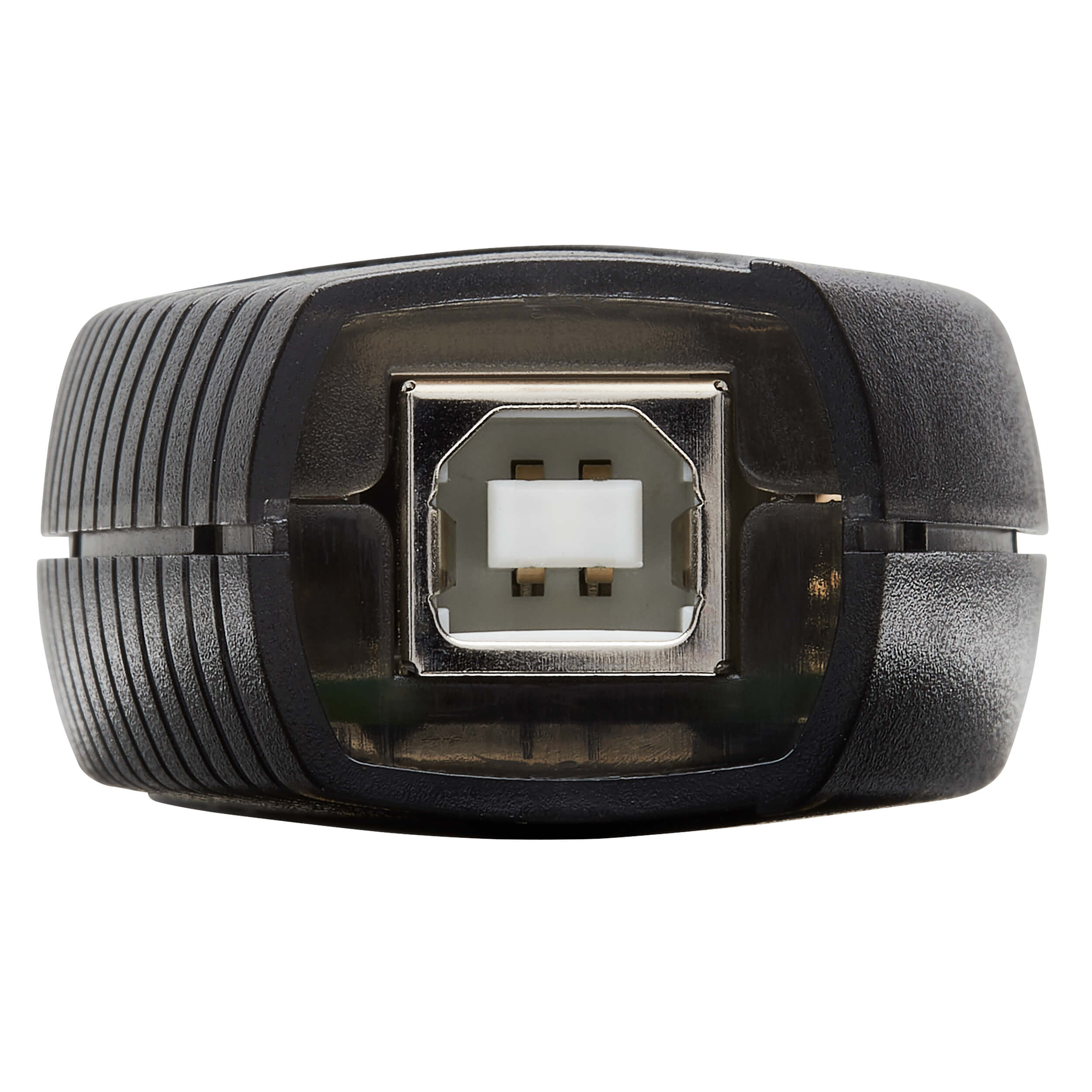 No external power supply is needed and only one connection is required. Simply connect the included three-foot (0.9-meter) USB cable between the unit's USB-B port and your computer's USB-A port. The unit is compatible with any USB cable up to 16 feet (4.9 meters). A green LED indicates data activity at a glance. The unit weighs only 2 ounces for convenient transport in a backpack or laptop bag.