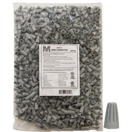 Morris 23171 Screw-On Wire Connectors P1 Gray Bagged 1000 Bulk Pack