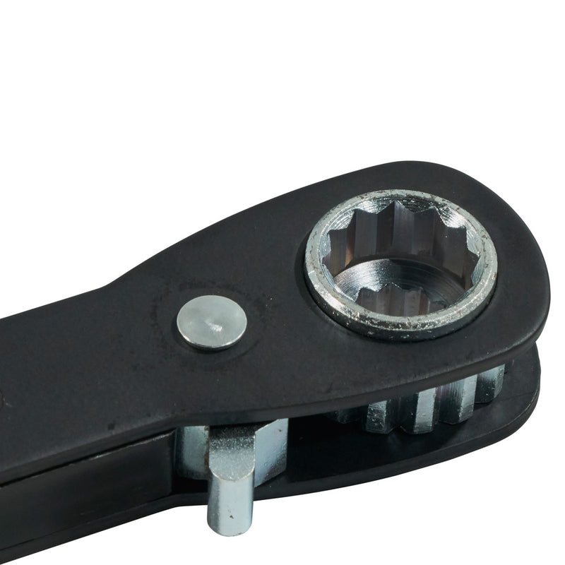 The Klein Tools' Heavy-Duty Ratcheting Lineman's Wrench is great for utility work! Its 3/4'' and 1'' x 1-18'' combination square socket works with the most common utility hardware. It also features two popular wrench sizes: 3/4'' and 9/16''.