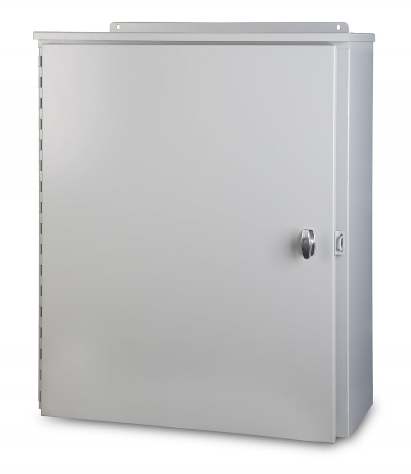 Austin large hinge cover NEMA 3R cabinets are constructed standard in galvanized steel with an ANSI 61 gray polyester powder coating. Optional panels are painted white.
