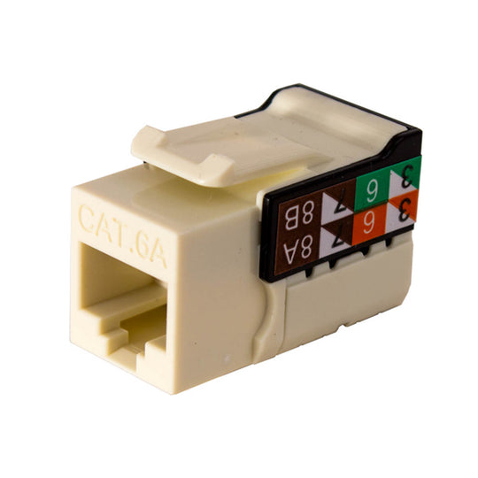 The Cat6A jack is the most widely used keystone jack in today’s market for networking wall plate solutions or patch panels. Each Cat6A jack provided by Vertical Cable provides outstanding performance, exceeding the TIA/EIA-568-B.2-10 industry standard. Because of this standard, these Cat6a jacks support the operation of 10Gig Ethernet applications. This makes these keystone jacks perfect for use in today’s high-speed networks while remaining completely backward compatible with all previous standards.