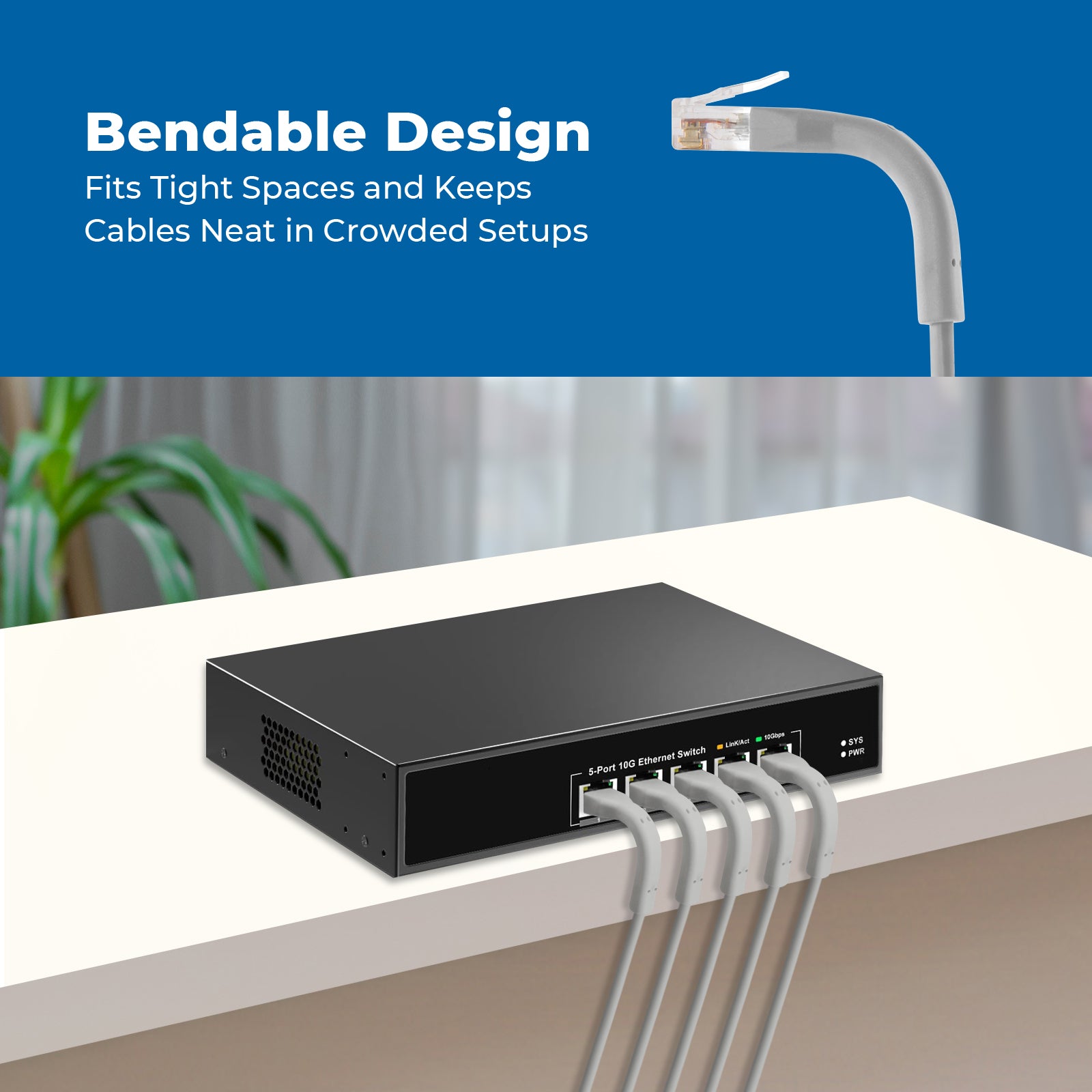 • Cat6A UTP Bendable Slim Ethernet Network Cable, 28AWG - Gray