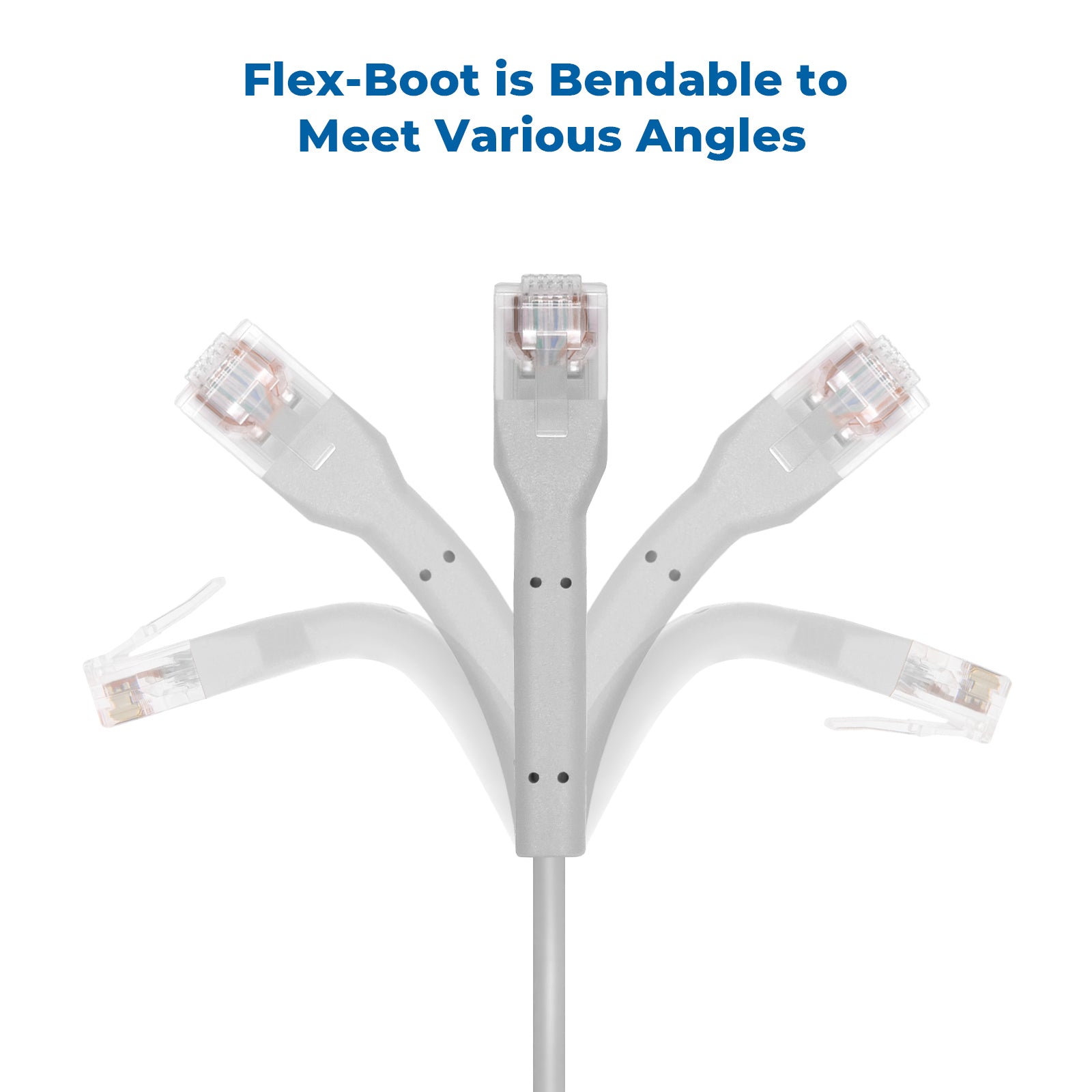 Unique boot design enables multi-angle bending of the RJ45 connector for easier cable management in confined spaces.