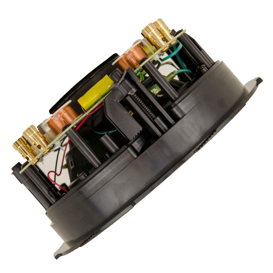 The easy to install DT series speakers are a 2-way ceiling loudspeaker that incorporates high tech woofer materials with a butyl rubber surround and the state-of the-art dual dome diffraction-less Ferrofluid cooled tweeters. The tweeters are in a preset angled configuration to prevent noise canceling. The DT provides stereo sound from one speaker. This revolutionary combination provides superior and more natural sound for both foreground and background applications.