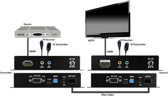 - Transmits audio and video via HDMI as well as bi-directional IR and RS-232