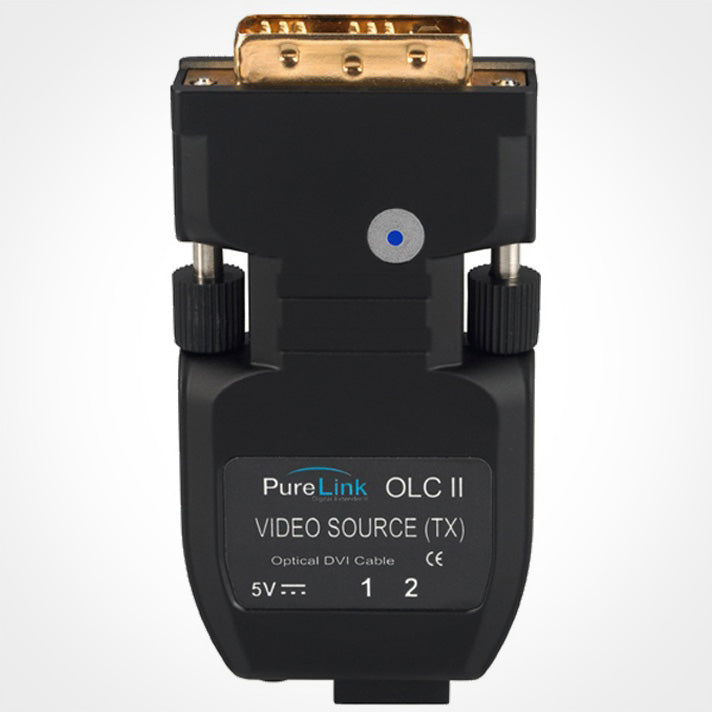 The PureLink OLC II Rx DVI to 2 LC Fiber Receiver Unit extends a 1080p DVI signal up to 6500ft using a single mode fiber optic cable. With the automatic EDID management, a separate DDC connection is not required, simplifying cable management. These detachable units also make it easy to run fiber cables through conduit or tight spaces before and after installation. The transmitter connects directly to the source device.
