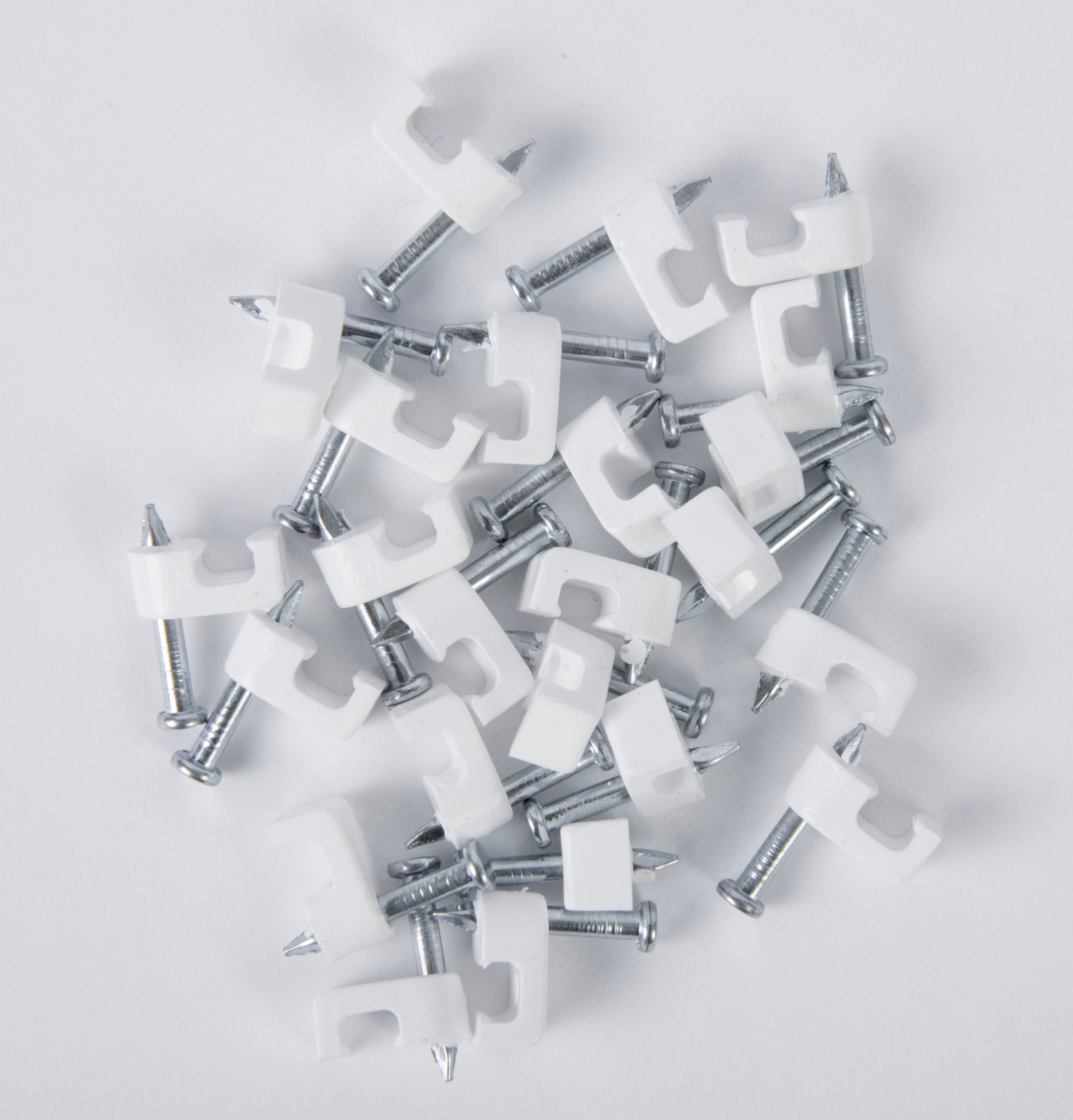 Gardner Bender 3/16 in (5 mm), Polyethylene Staple, Secures Low Voltage/Bell/Speaker Wire, Hardened Nail for Masonry App, White, (25-Pack), PMC-1525WT