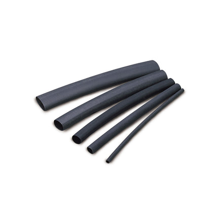 Thin wall heat-shrink tubing is constructed from durable, flame-retardant black polyolefin which is resistant to both solvents and fluids making it ideal for cable insulation, repair, marking or bundling. Heat shrink not only provides superior mechanical, abrasion and moisture protection but also strengthens connections and provides a comfortable gripping surface. As a result, professional and DIY multi-purpose uses include repairing cords (ranging from large appliance cords to small electronic cables that show wear at pull-out), covering tool and sporting equipment handles, and sealing rope for neat, unravel resistant ends. Finally, tubing capably resists common fluids and solvents. Upon heating to 120? C (250? F) the tubing begins to shrink but will not drip, crack or flow and is self-extinguishing within 30 seconds. Meets UL 224, 125? C: CSA C22.2 No3 198.1, 125? C; MIL-DTL-23053/5, Class 1 and 2, AMS 3636 and 3637; DEF STAN 59-79, Issue 3 Type 2a. Continuous operating temperature: -55? C (-67? F) to 135? C (275? F). Shrink temperature: 120? C (250? F) to 250? C (480? F). 600 V/Mil Dielectric strength