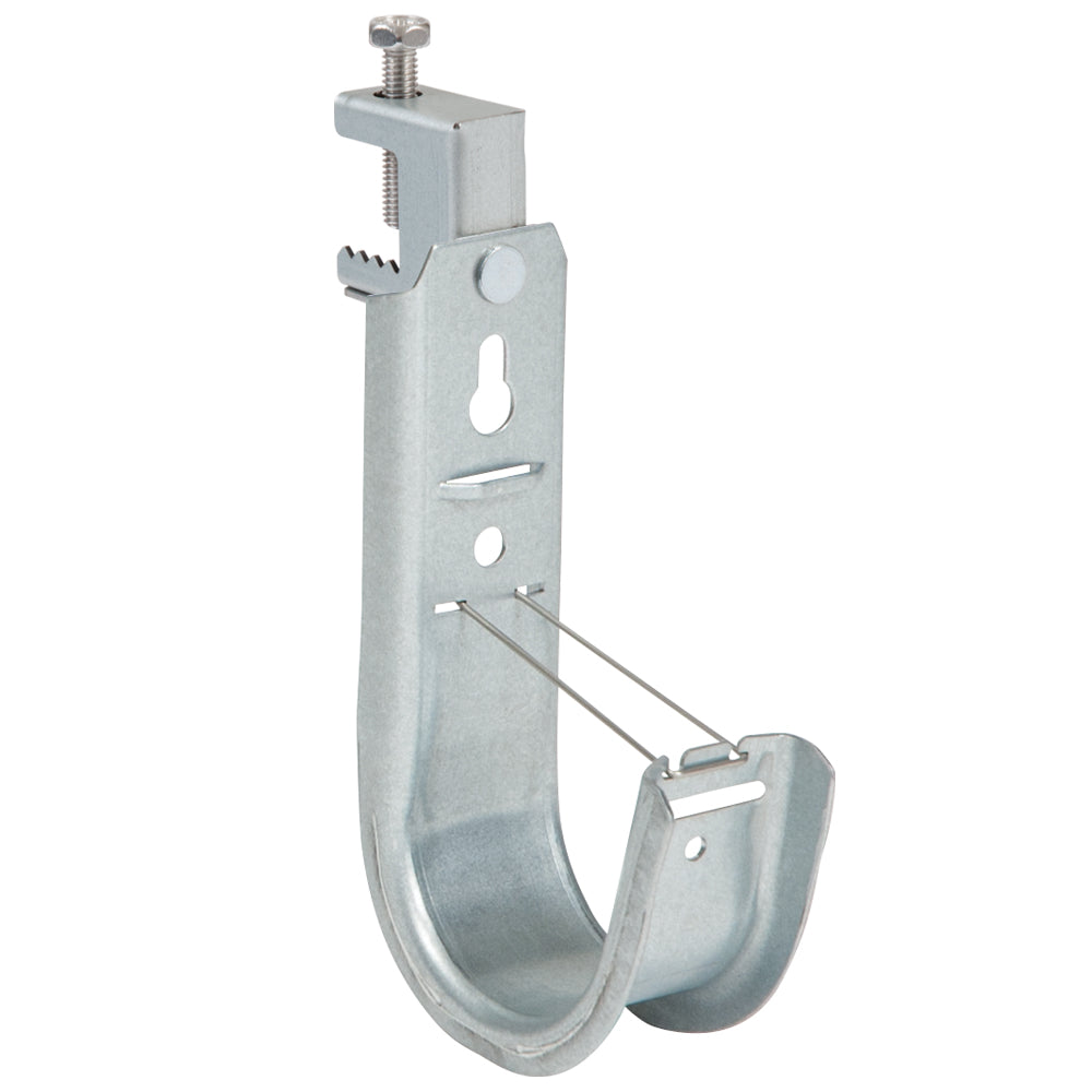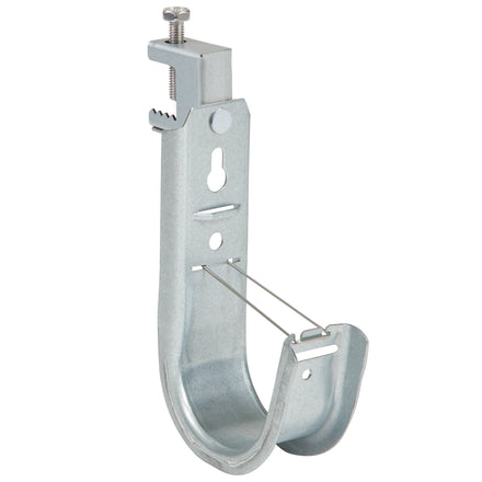 ICC’s J-Hook with Beam Clamp is a reliable solution designed to support category cables, fiber optic cable, innerduct systems, and other low voltage cabling requirements. The J-Hooks, with a reinforced body capable of withstanding substantial payloads, are constructed from high-quality galvanized steel, ensuring strength and durability. They accommodate a variety of cables, including CAT 5e, CAT6, CAT6A, coax, fiber optic cables, and conduit. The rust-resistant zinc finish adds to their longevity, and the design complies with EIA/TIA requirements for structured cabling systems. Offering a cost-efficient alternative to expensive cable trays or ladder rack runways, these J-Hooks feature smooth edges to protect cables and facilitate a proper bend radius. Cables can be pulled through quickly and easily, and the anchor points are designed to be secured with cable ties. Available in bulk packs of 25, these J-Hooks provide a practical and scalable solution for cable management needs.