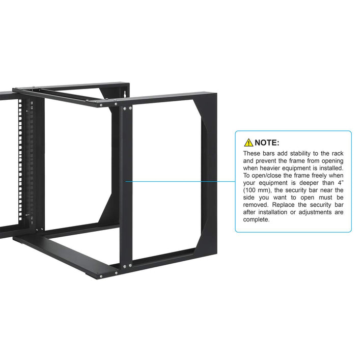 19" Wall Mount Open Frame Network Rack, Front-Hinged Swing Frame