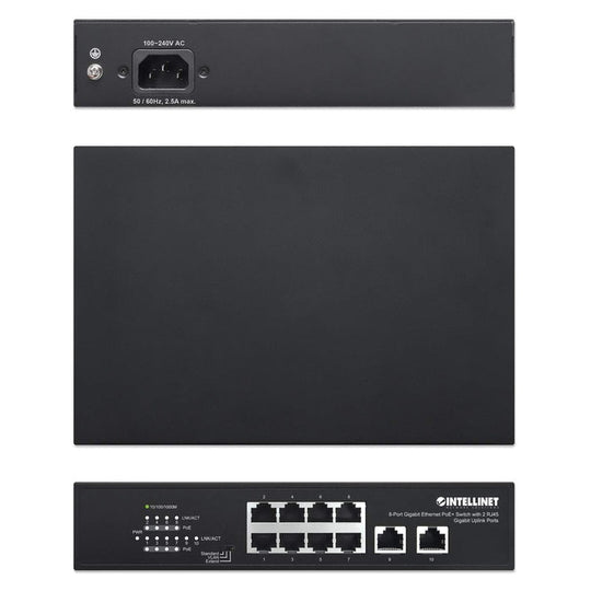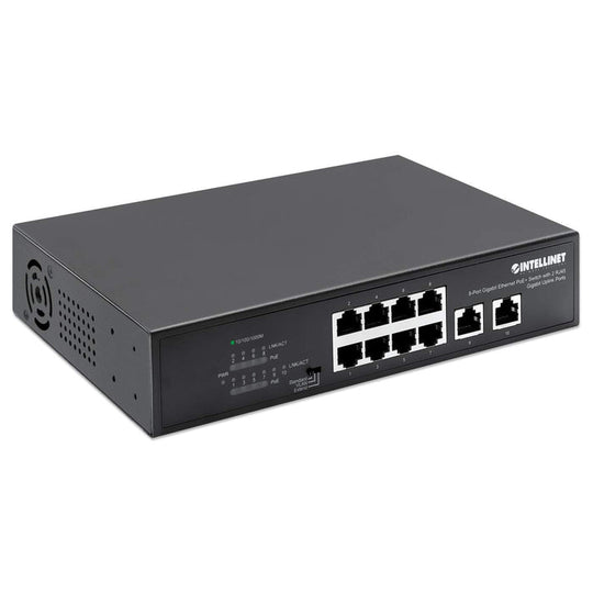 Intellinet 8-Port Gigabit Ethernet PoE+ Switch with 2 RJ45 Gigabit Uplink Ports, 561402