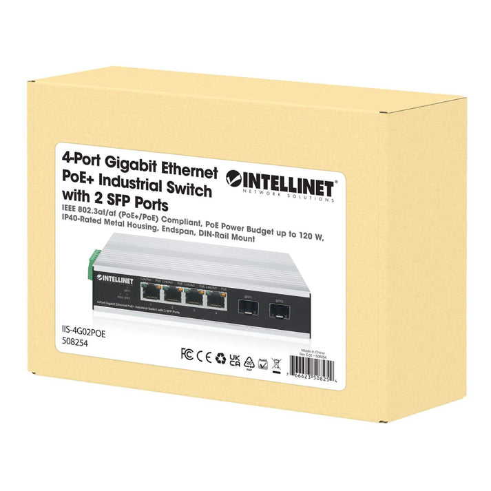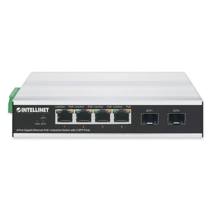 Intellinet Industrial 4-Port Gigabit Ethernet PoE+ Switch with 2 SFP Ports, 508254