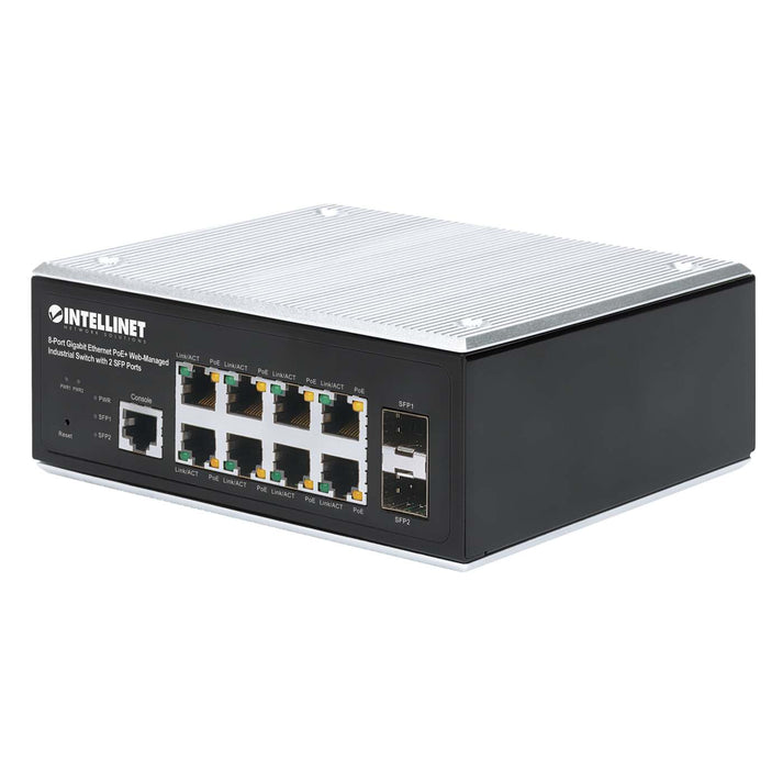 Intellinet Industrial 8-Port Gigabit Ethernet PoE+ Layer 2+ Web-Managed Switch with 2 SFP Ports, 508278