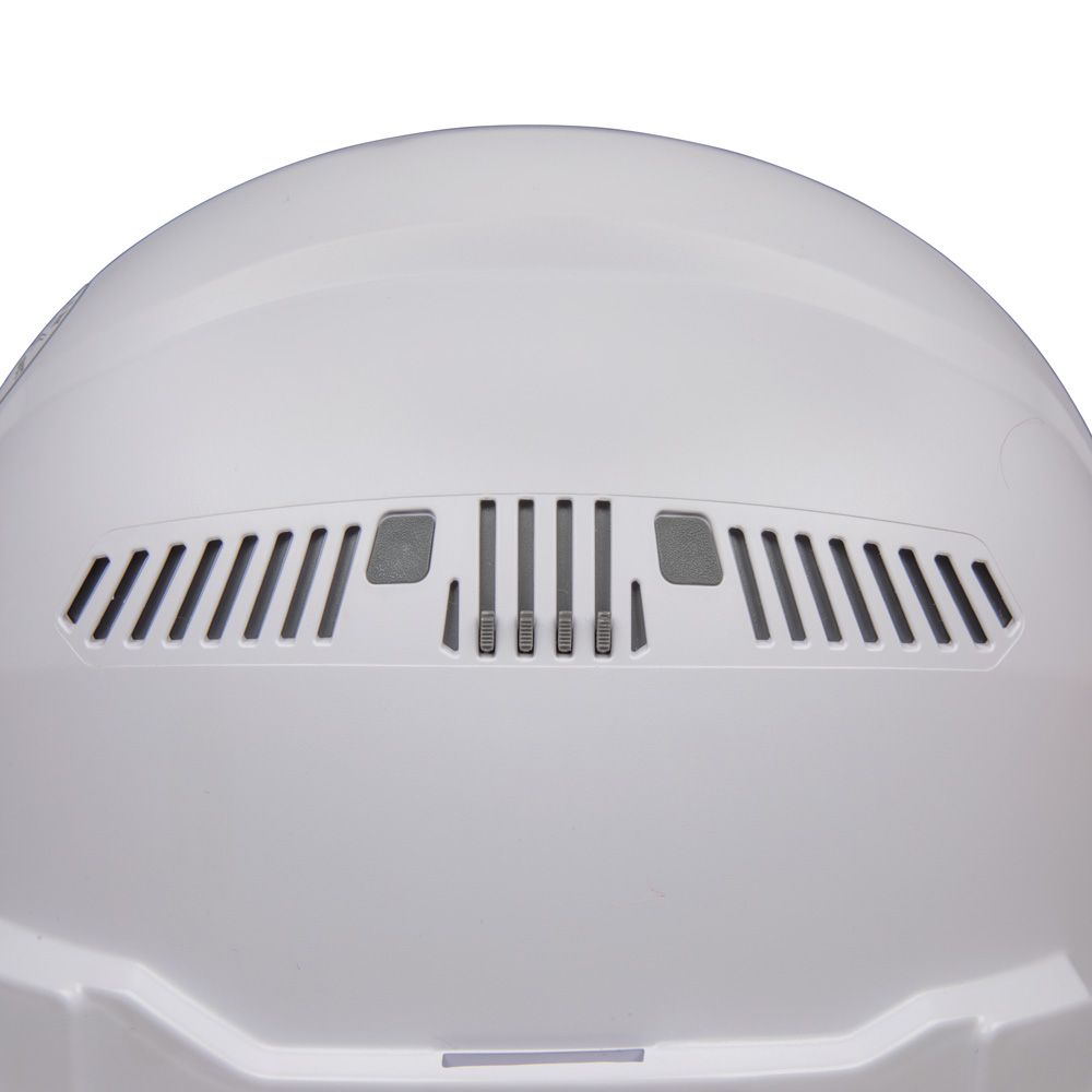 - Safety hard hat has patent-pending accessory mounts on front and back attach Klein Headlamps securely, every time — no straps or zip ties needed!