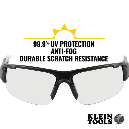 Klein Tools Professional Safety Glasses are high-quality protective eyewear that feature an anti-fog coating that won't wear off. Scratch resistant indoor/outdoor lenses with UV protection block 99.9-Percent of harmful UV rays. Lightweight and flexible materials for long-term comfort with rubber nose piece and temples for face conforming fit and sure grip. Optional Hard Case (Cat. No. 60176) and Breakaway Lanyard (Cat. No. 60177) sold separately.