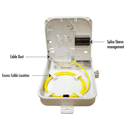 The Hammer Series Fiber Optic NID is a rugged outdoor wall mount fiber termination and distribution enclosure. Designed for FTTx deployments, our outdoor fiber optic distribution box is constructed of ultraviolet/water resistant high impact ABS/PVC plastic. Accommodates 2.0 mm, 3.0mm pigtail, or drop cable. A flexible rubber jam and waterproof joint work together to create versatile cable entries.