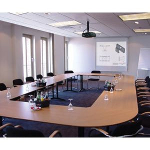 When used without an additional drop pole, Peerless AV’s PJF2-UNV extends less than eight inches from the ceiling for a clean low-profile installation. It can also be paired with a number of ceiling adapter plates and extension columns for custom solutions. The flexible mounting plate can spread to attach to most projector models weighing up to 50 lbs. With an open frame design and a 1-1/2” wire access hole, running cables and keeping them neat is a simple process. A sturdy black powder coat promises this mount will stay looking brand new for years to come.