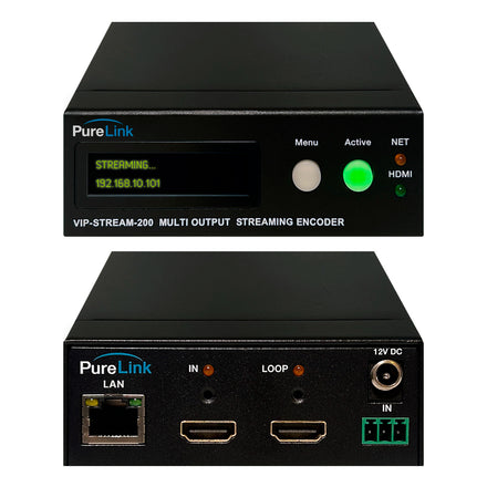 PureLink’s VIP-STREAM-200 streaming encoder provides simple to use and the best in-class 1080P60 encoding and is the only streaming encoder to provide multiple output formats, allowing you to stream to multiple platforms simultaneously. Connect with audiences through Facebook, YouTube, Twitter, Vimeo, and many more with up to three different platforms at the same time. Setup is simple using the built-in web interface designed for access from both smart phones and laptops.