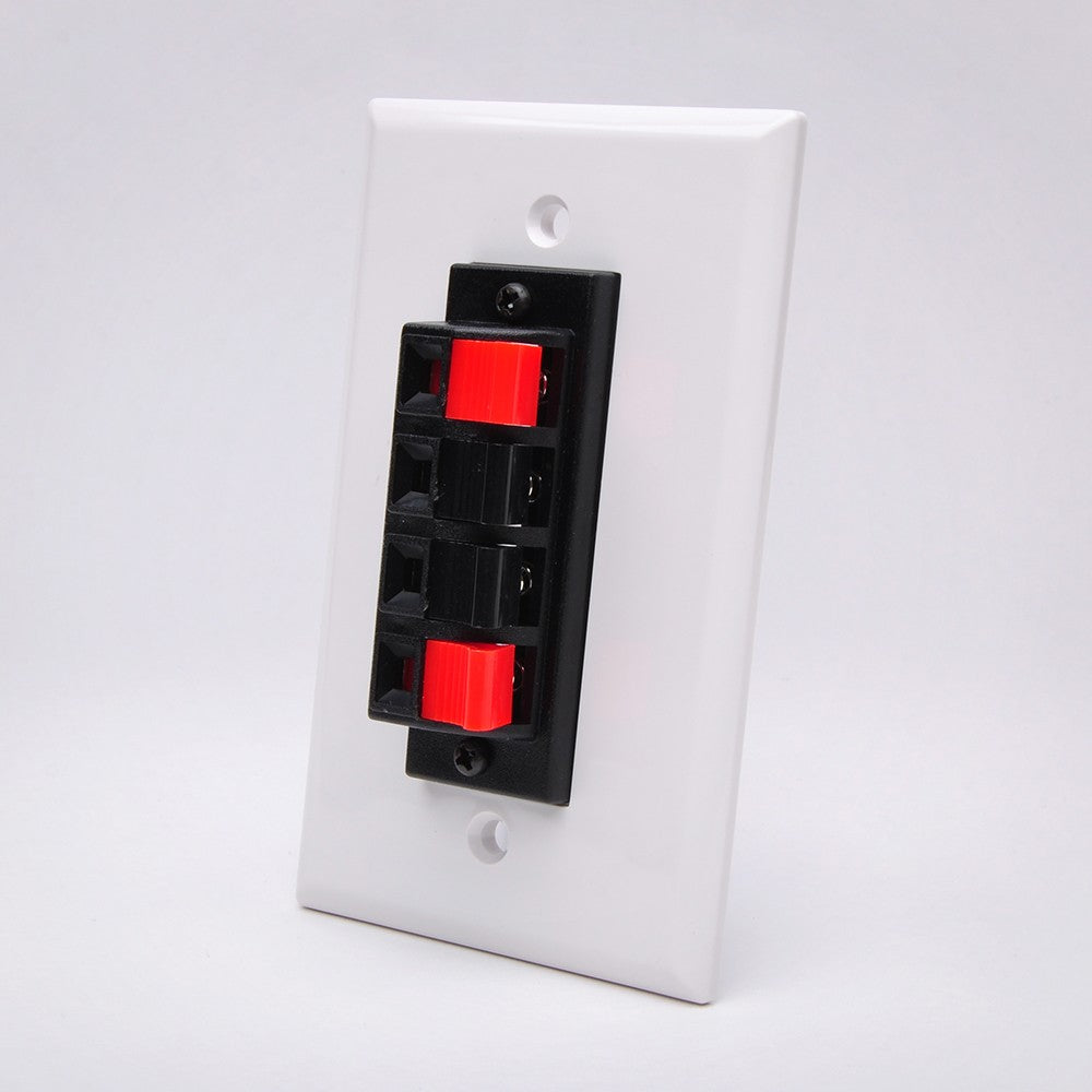 Spring Clip Speaker Wire Wall Plate For Audio w/ 4 Terminals