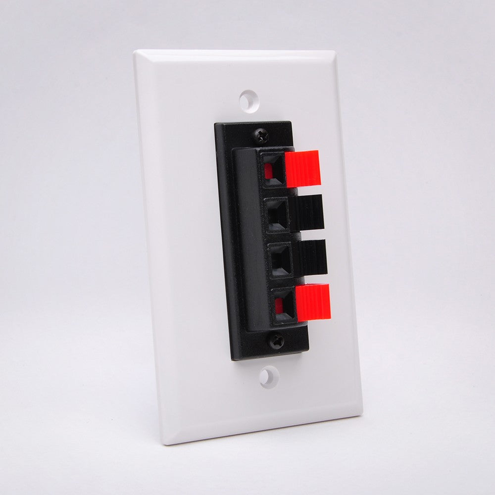• Speaker Wire Spring Clip Wall Plate with 4 Terminals