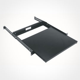 Filling just a single rackspace, SSL sliding shelf extends 11-3/8” on nylon roller slides equipped with positive-stop lockouts. A telescopic rear support mounts to any rack (rear rackrail required in steel racks). The shelf itself is made with an attractive black laminate material. NOTE: Fits in racks with a minimum 15-1/8” from front to rear rail.Characters & Features