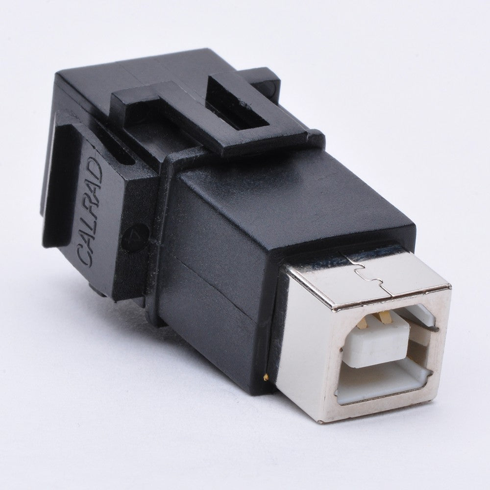 This is a keystone insert with USB B female ports on either end. It has a black, molded plastic covering and is designed to snap-in to a wall plate or patch panel. This product passes through a serial connection.