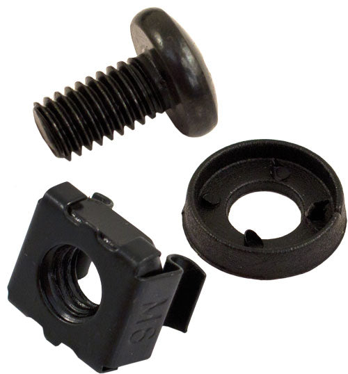 50 Washers, 50 M6 Screws, 50 M6 Cage Nuts. For Racks, Shelves & Wall Mounts. Length 12mm (0.47 inches)